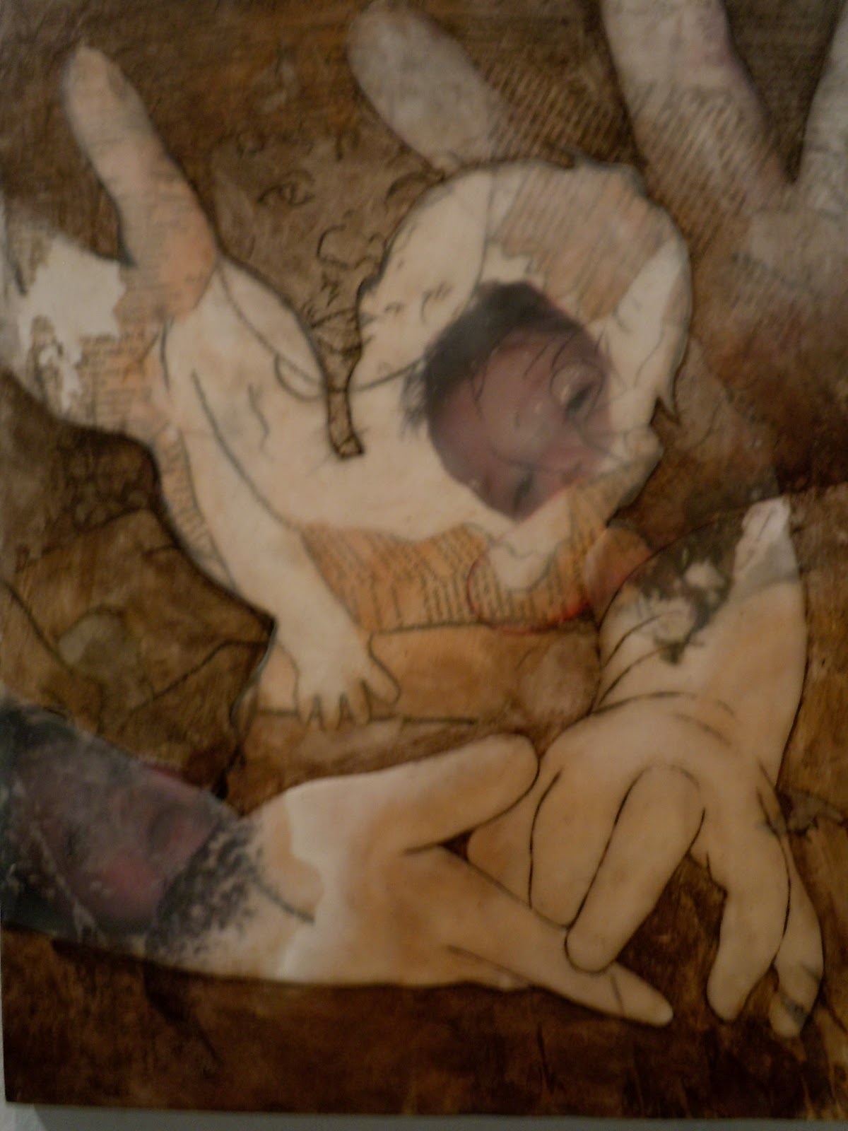 In hopes of the immaculate coming together (the graduating seniors always talk about), this semester I plan on investigating images of mother and child and explaining the conceptual relationship between photography and memory. I will focus my first research paper on mother and child imagery, the taboos, attitudes about childhood, how other cultures deal with it, how it is depicted and discussed in art-historical and contemporary artists’ work. I will look further into the work and statements of Janine Antoni, Elinor Carucci, Mary Kelly, Sally Mann, Jenny Saville, Kathe Kollwitz, and Kiki Smith. Once I have a better understanding of that, I would like to look more deeply into the photographs connection to memory in my second research paper. I will research the writings of Susan Sontag (On Photography, Essay on Beauty), Jeffrey Batchen (Forget Me Not), Roland Barthes (Camera Lucida), and Lisa Saltzman (Making Memory Matter). All the while, I will continue to look into the histories of the paper cut out, encaustic medium, and oil paint. I will also think about the implications of feminism, narcissism, the archive, and the audience. By June I hope to have fifteen to twenty objects that layer, break, and interrupt the photographs, text, silhouettes, outlines, and traces of figures. I hope the series will encompass a specific complexity of parenthood and surprise the viewer through the visceral erasure and collection of materials.
